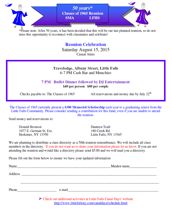 Class of 1965 Reunion Details/Registration Form